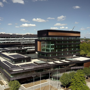 Ron Peeters: “Het oorspronkelijke gebouw is gestript tot aan de betonconstructie, waarvan meer dan 80% is hergebruikt in het nieuwe ontwerp. Alle oude installaties zijn verwijderd en Bosman heeft gezorgd voor de nieuwe duurzame, technische installaties. Het vernieuwde gebouw is uitgerust met energiebesparende technieken waarmee het duurzaamheidsniveau BREEAM Excellent is behaald, waaronder een wko-installatie in plaats van een aansluiting op het aardgasnet, pv-panelen en ledverlichting. De intelligente data-infrastructuur en locatiesensoren, waarmee de klimaat- en verlichtingsinstallatie geregeld kunnen worden, zorgen voor een lager energieverbruik en efficiënter gebruik van de ruimtes. Daarnaast is het een open gebouw met veel daglicht door het atrium en krijgen de verschillende ruimtes, bij gebruik, regelmatig verse lucht aangevoerd wat de gezondheid en het comfort van de gebruikers ook weer ten goede komt.”
